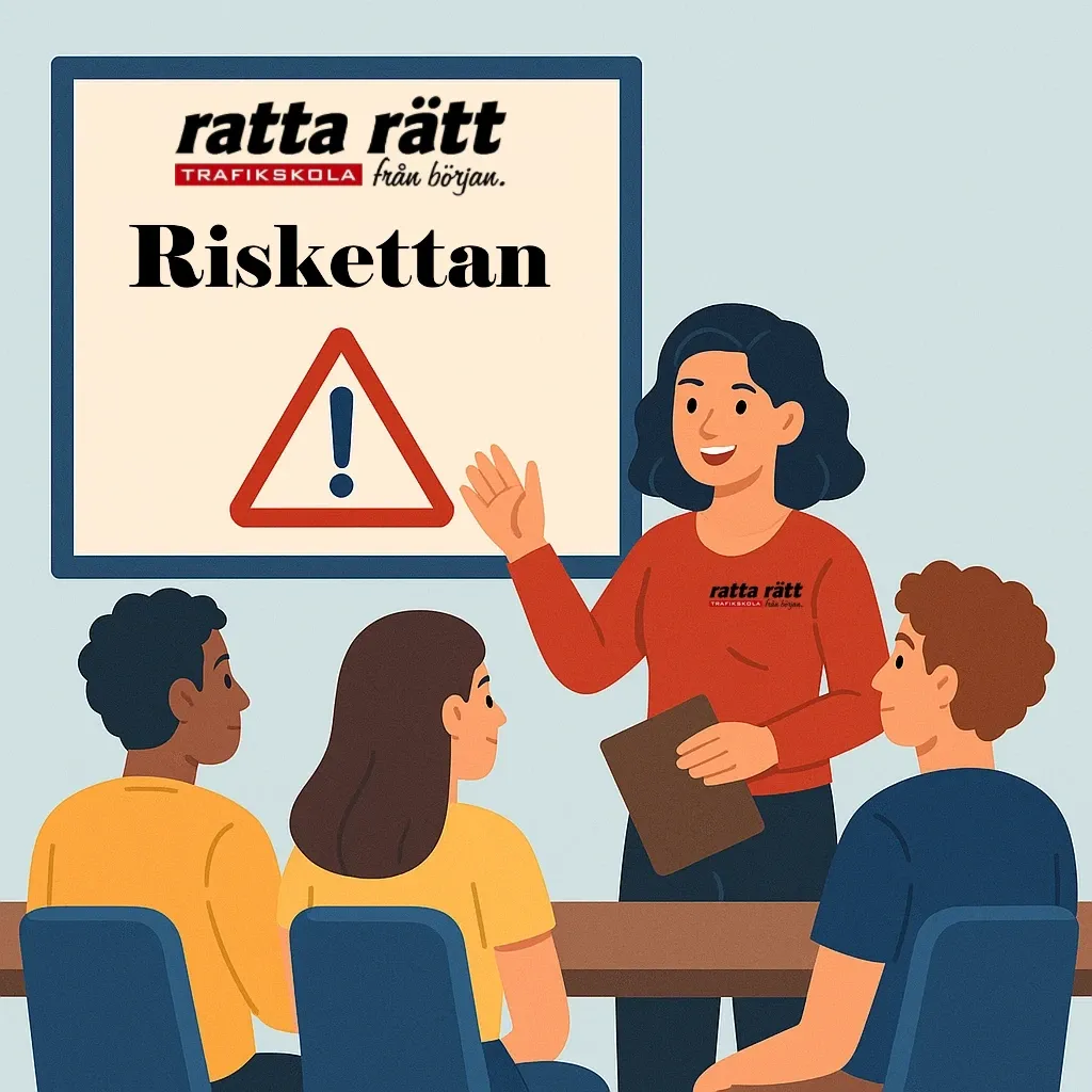 Vi lägger stort fokus på att diskutera olika riskbeteenden i trafiken. Vi pratar om hur olika risker kan uppstå och vad du kan göra för att minska dem, eller undvika dem helt och hållet.